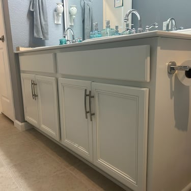 Color: Sherwin Williams Alabaster Finished with a premium 2K Cabinet Coating For a Factory-Smooth, Long-Lasting Finish.
